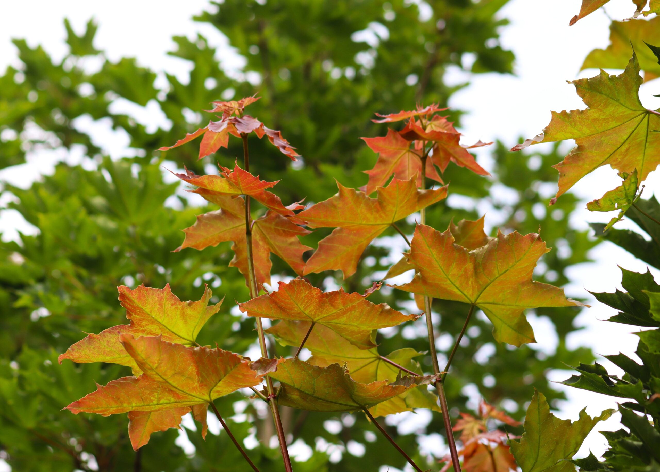 Unlike the species, Acer platanoides ‘Emerald Queen’ features a strong central leader, which gives it a more uniform and upright shape. Its brighter green summer foliage and more vivid autumn colour also make it visually distinct.